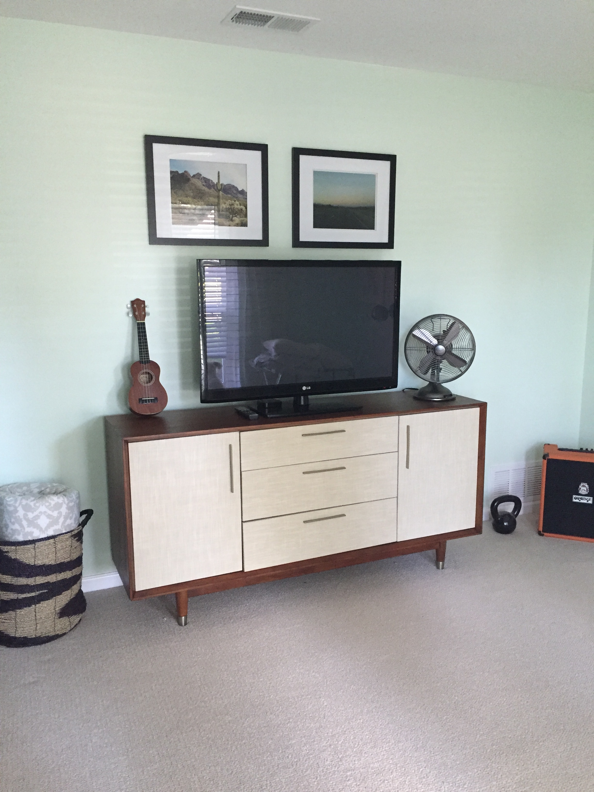 My plans are to move the credenza to this wall and keep Charlie's guitars above. I don't love the guitars, but we don't really have another spot for them in our house, and I like that it keeps them off the floor.