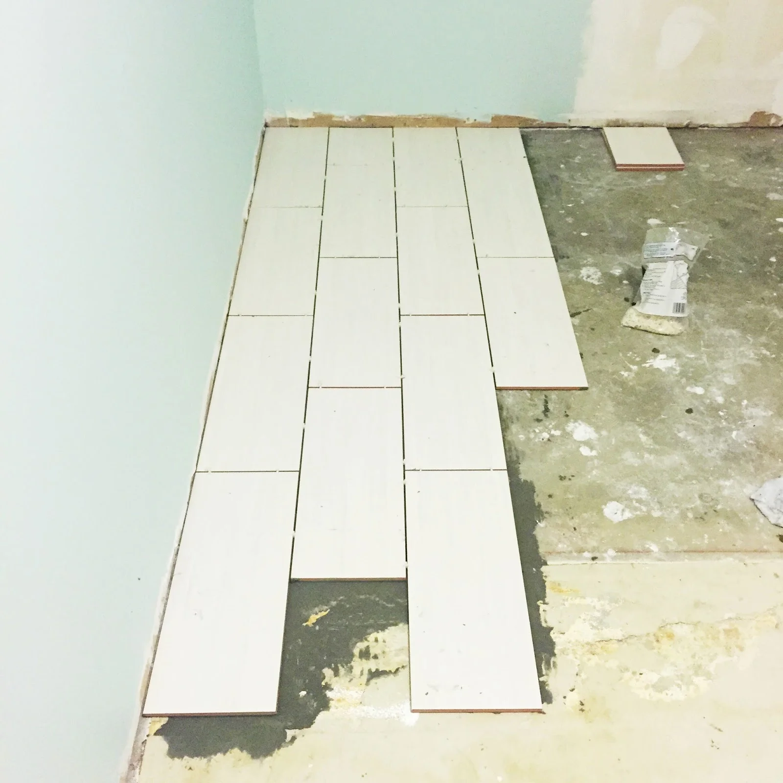 We started tiling on Friday night, and surprised ourselves by getting the floors tiled and grouted by early Sunday evening, allowing us to have a little bit of time to relax over the weekend.