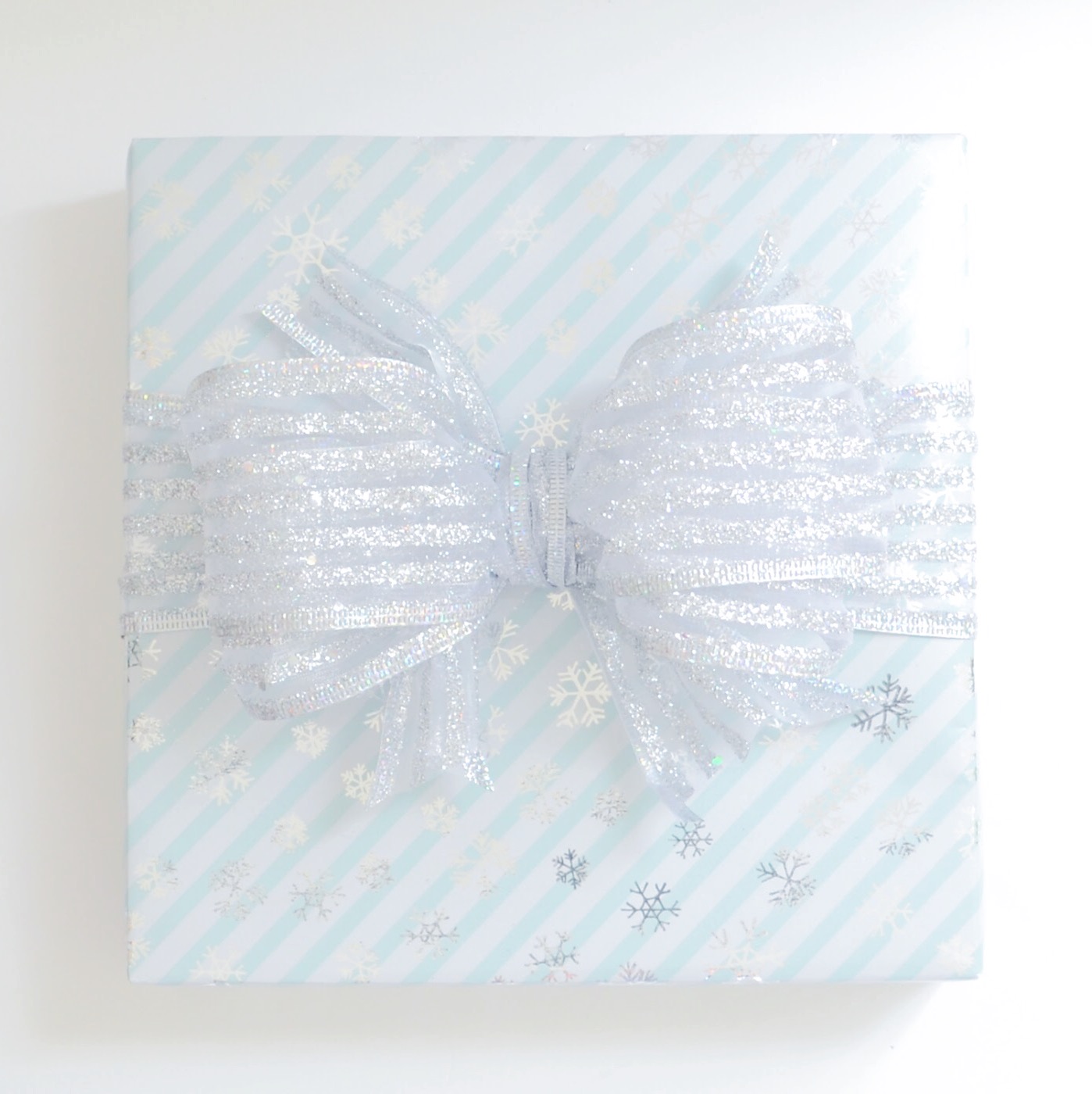 9 | Pull ribbon taut. This will also rotate your bow around to the correct spot on your package.