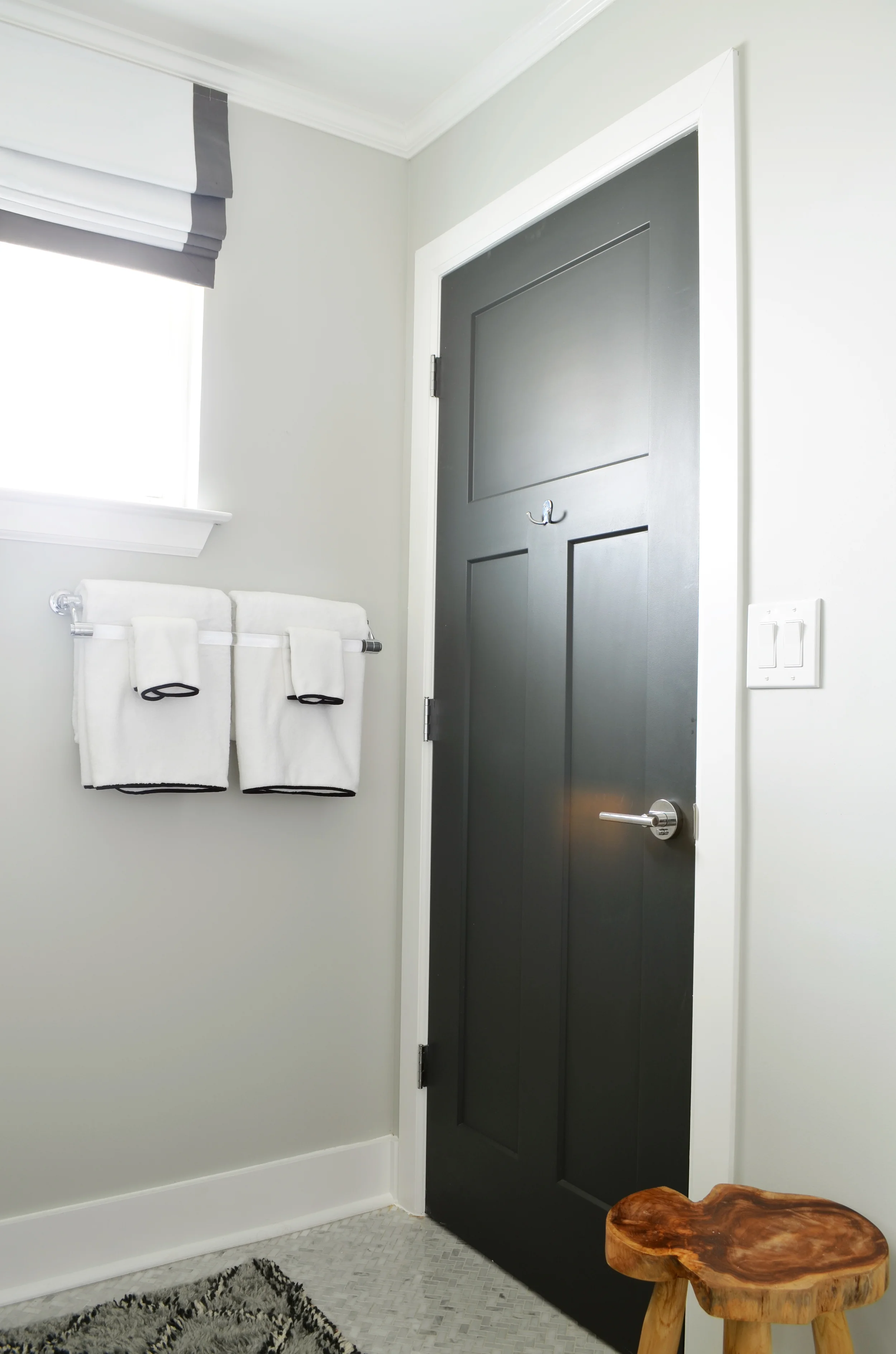 In this back corner we removed an awful bright blue pocket door and added a double towel rod.