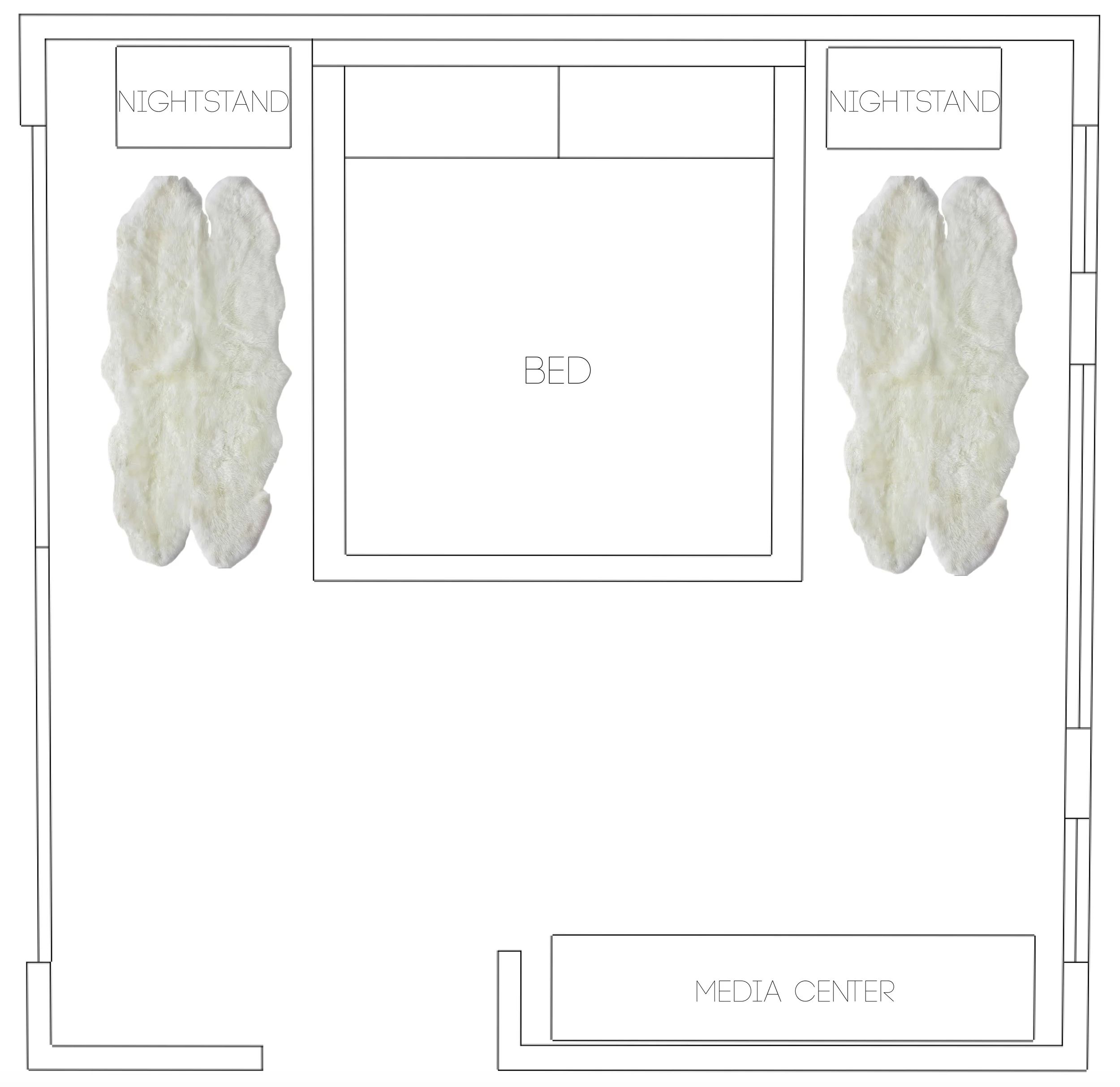 The existing floor plan was kept and two faux sheepskin rugs were added to bring in some texture.