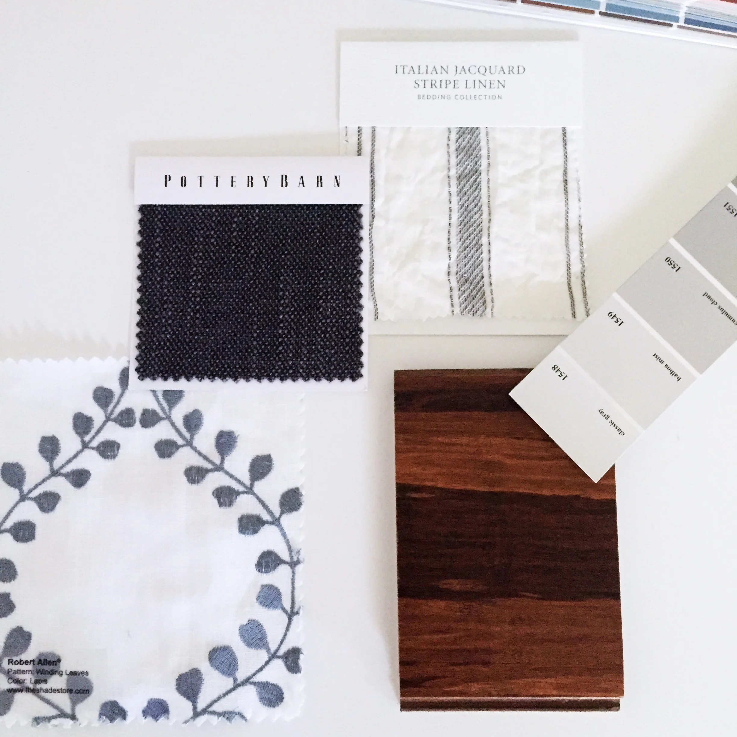 The walls will be painted Benjamin Moore Classic Gray, which will freshen up the room and go well with their existing wood trim. They also have children and didn't want an all white duvet cover, so we decided on this striped linen bedding from Restoration Hardware to keep with the light and contemporary feel of the space.